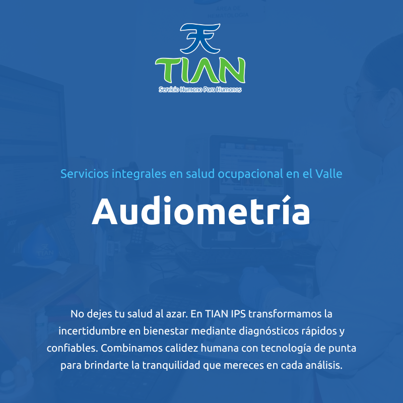 En TIAN IPS, detectamos a tiempo cualquier alteración auditiva para evitar daños irreversibles. La exposición al ruido laboral no debe ser un riesgo para la productividad de tu empresa; con nuestra tecnología de vanguardia, garantizamos diagnósticos precisos que aseguran el bienestar de tus trabajadores.